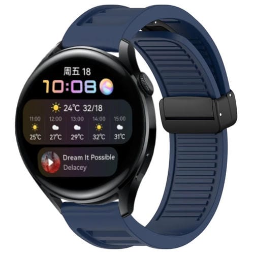 For Huawei Watch 3 Silicone Watch Band with 22mm Folding Magnetic Buckle (Midnight Blue)