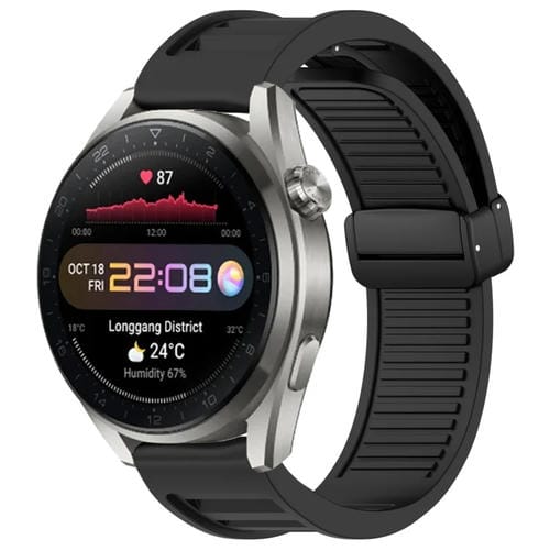 Correa de Silicona para Huawei Watch 3 Pro con Hebilla Magnética Plegable de 22mm (Negro)