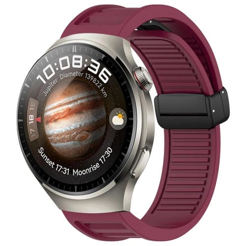 Correa de Silicona para Huawei Watch 4 con Hebilla Magnética Plegable de 22mm (Rojo Vino)