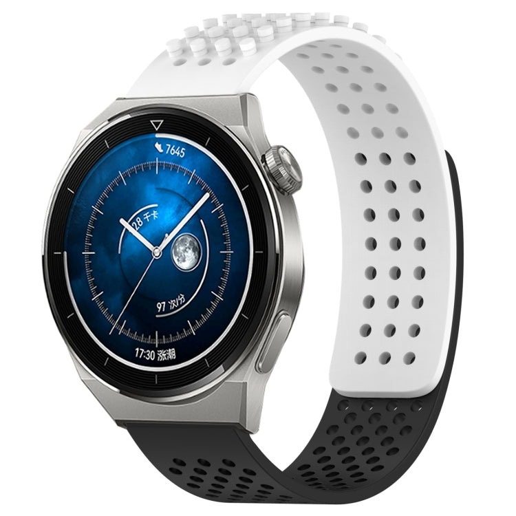 Para Huawei Watch Gt3 Pro 46mm 22mm Agujeros Correa de Reloj de Silicona Transpirable con Puntos 3D (Blanco + Negro)