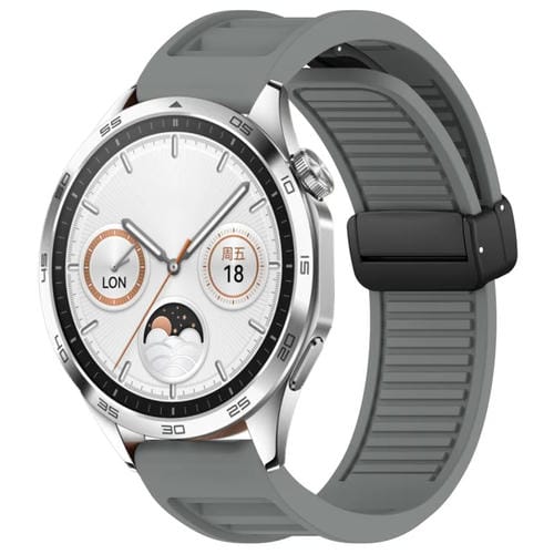 Correa de Silicona para Huawei Watch GT4 46mm 22mm con Hebilla Magnética Plegable (Gris)