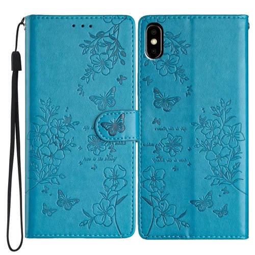 - 1x Funda para Huawei Y5 2019 de Cuero con Relieve de Flor y Mariposa (Azul)