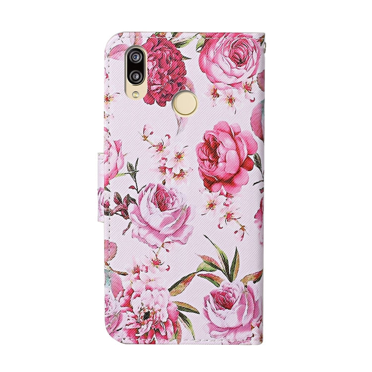 Estuche de Cuero para Huawei Y7 (2019) con Tapa Horizontal, Soporte, Ranuras para Tarjetas y Billetera (Peony)