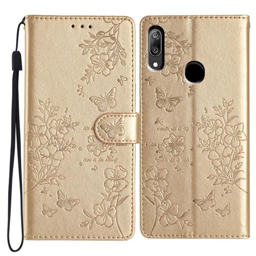 Funda para Huawei Y7 2019 de Cuero con Relieve Flor de Amor y Mariposa (Dorado)