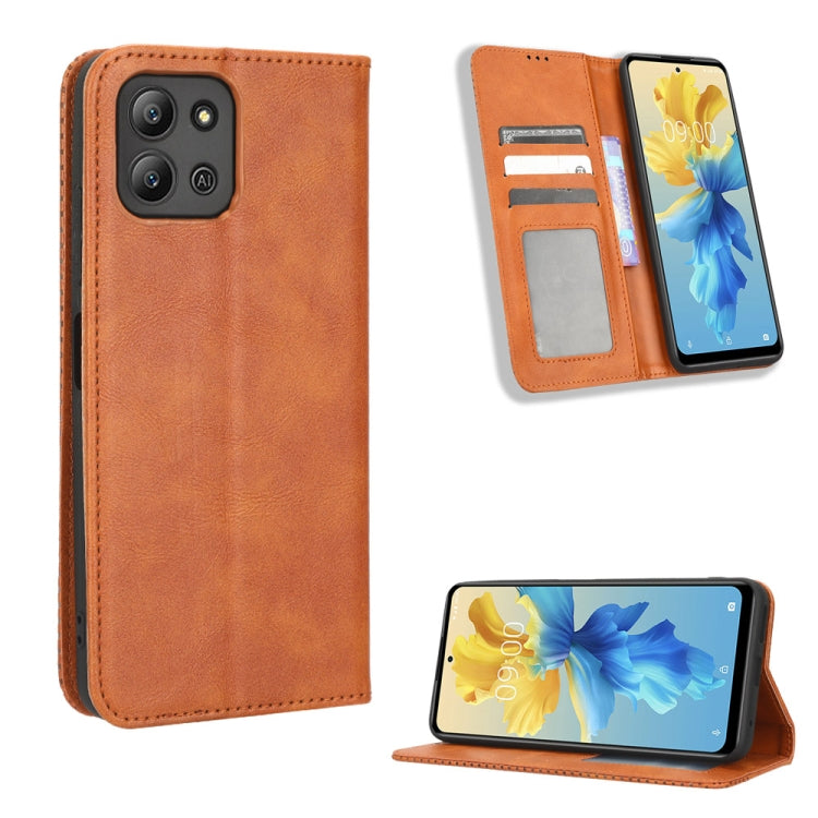 Funda de Cuero con Hebilla Magnética para Infinix Hot 11 2022 X675 (Marrón)