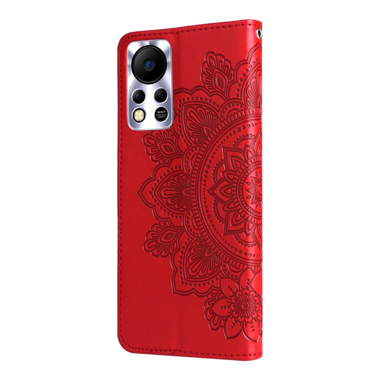 Funda Flip Leather para Infinix Hot 11S NFC con Flores de 7 Pétalos (Rojo)