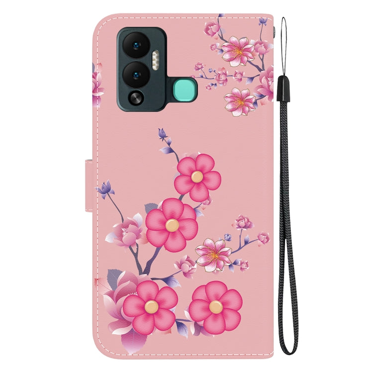 Estuche de Cuero para Infinix Hot 12 Play con Dibujo Coloreado y Textura de Cristal (Flores de Cerezo)