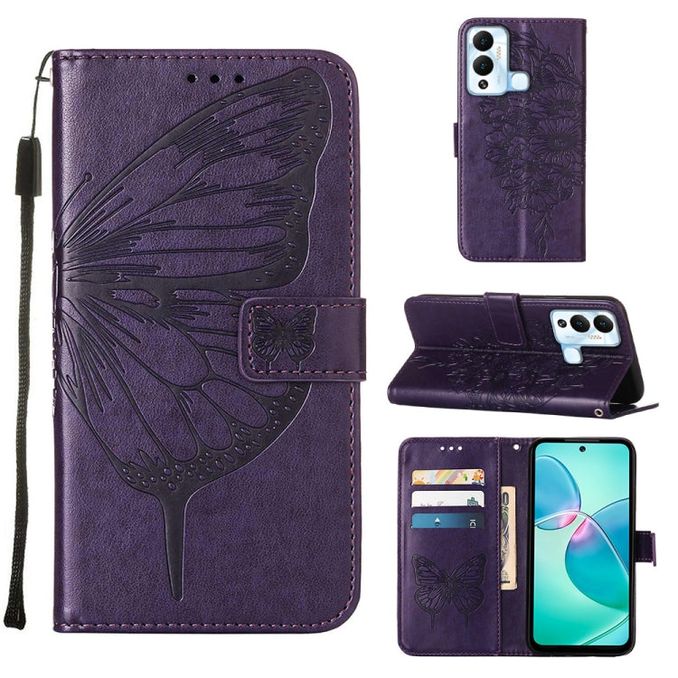 Funda de Cuero para Infinix Hot 12 Play/Hot 12 Play Nfc X6816C con Tapa de Mariposa (Morado Oscuro)