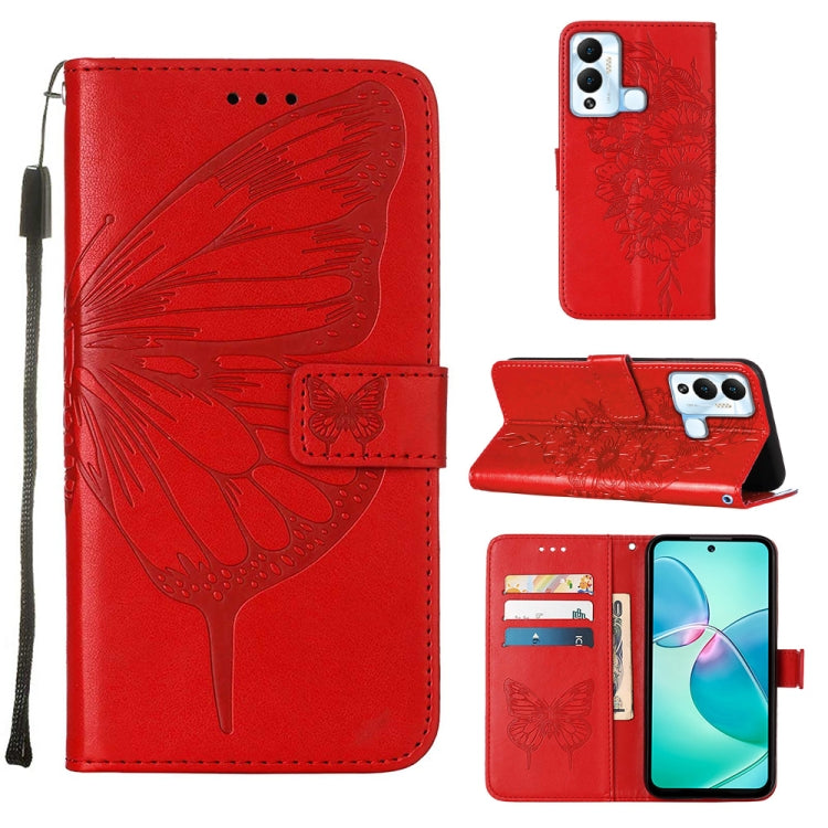Funda de Cuero para Infinix Hot 12 Play y Hot 12 Play Nfc X6816C con Tapa Mariposa En Relieve (Rojo)