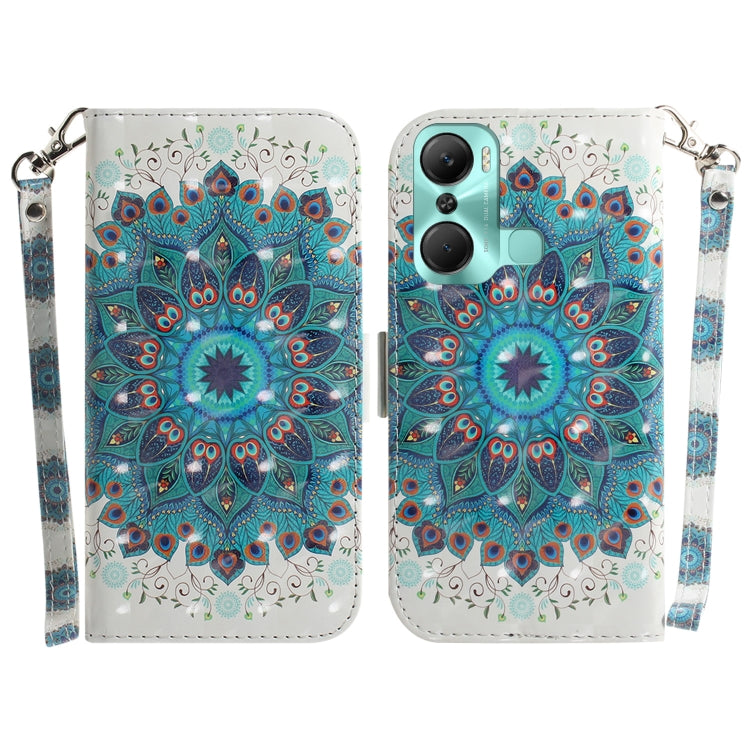 Estuche de Cuero para Infinix Hot 12 Pro con Tapa Horizontal 3D (Guirnalda de Pavo Real)