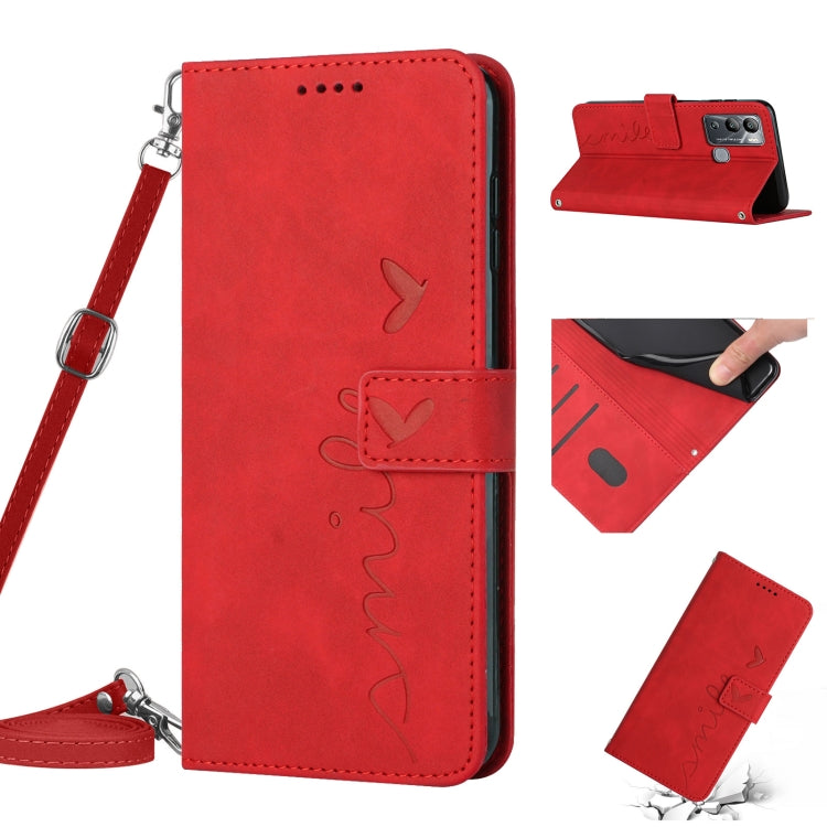 Funda de Cuero para Infinix Hot 12I con Cordón y Diseño Heart Pattern (Rojo)