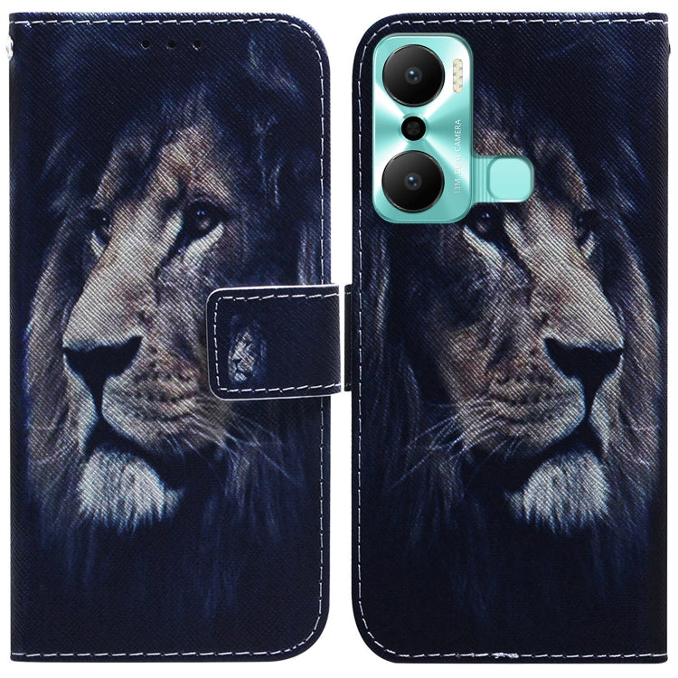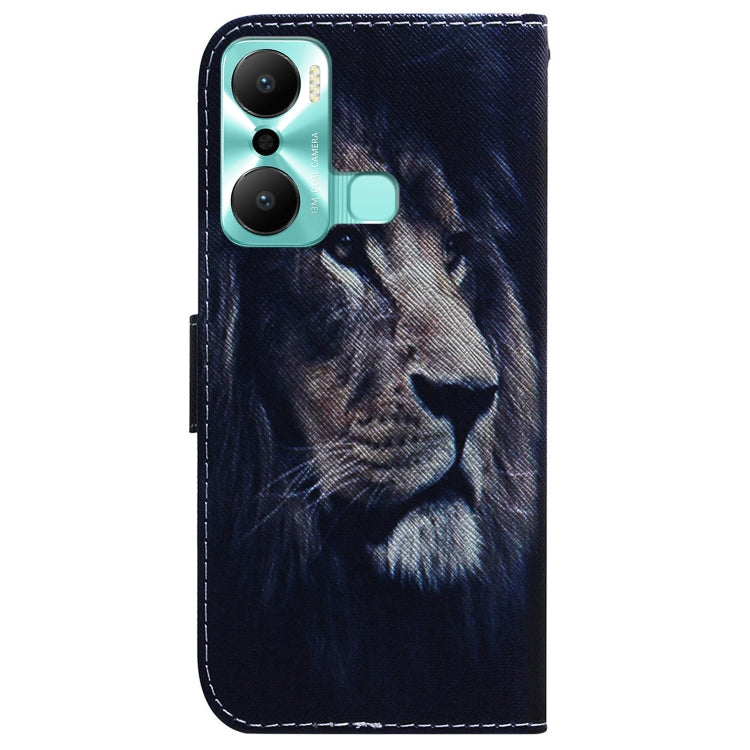 Estuche de Cuero para Infinix Hot 20 Play con Tapa Dibujo Coloreado (León)