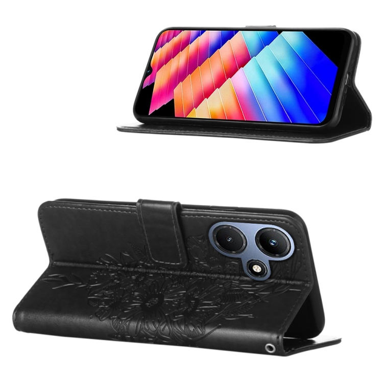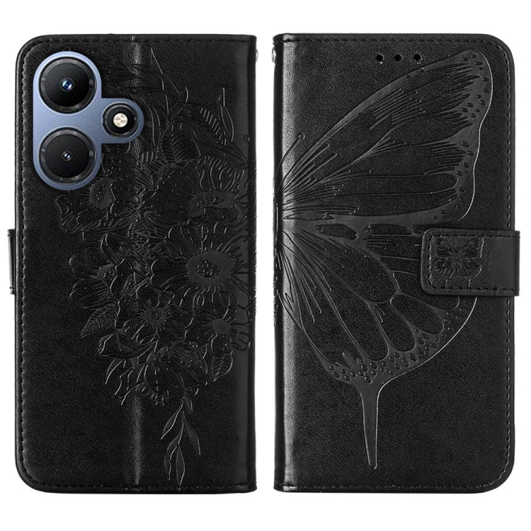Estuche para Teléfono Infinix Hot 30I X669 Cuero con Mariposa en Relieve (Negro)