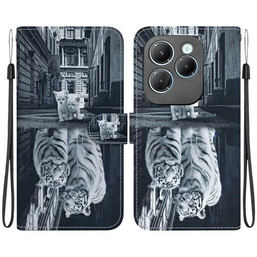 Funda de Cuero para Infinix Hot 40/40 Pro con Dibujo Coloreado y Textura de Cristal (Reflejo de Tigre Gato)