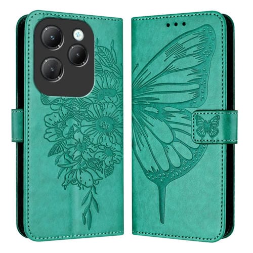 Funda de Cuero Infinix Hot 40 y Hot 40 Pro con Mariposa en Relieve (Verde)