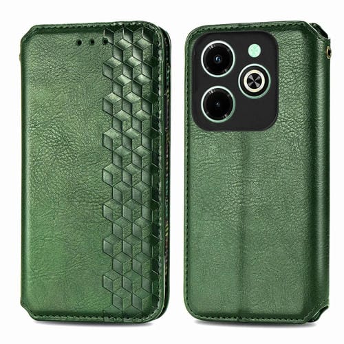 Funda de Teléfono Infinix Hot 40I Cubic Grid Cuero Magnético Prensado (Verde)