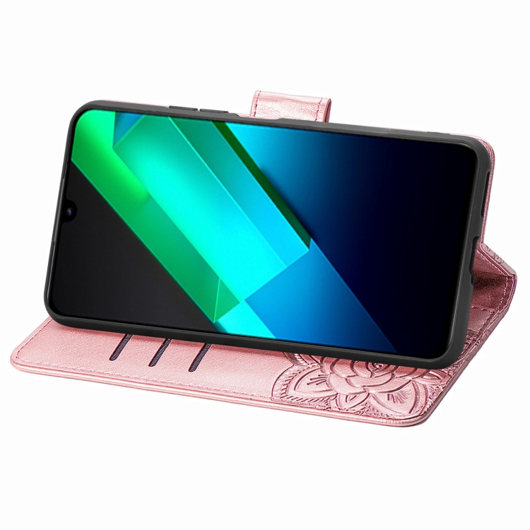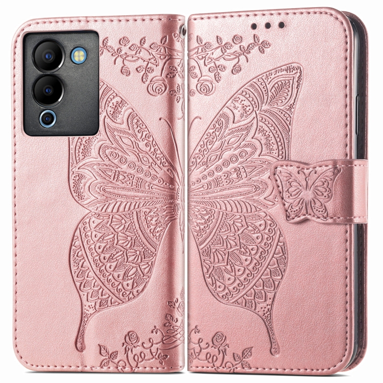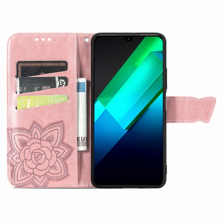 Estuche para Infinix Note 12 G96 Butterfly Love Flower de Cuero en Relieve (Oro Rosa)