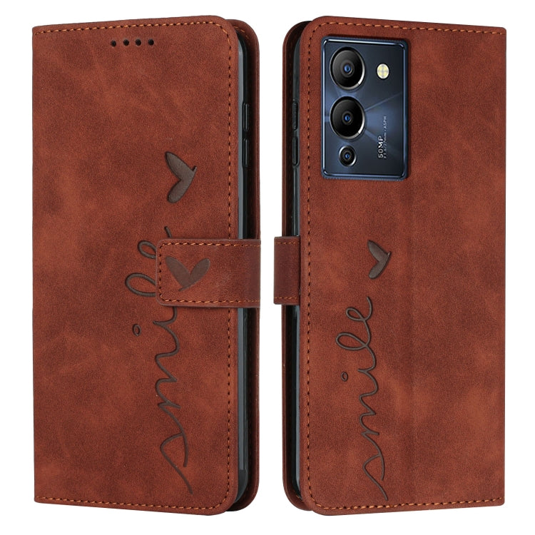 Funda de Cuero para Infinix Note 12 G96 Skin Feel con Diseño Heart Pattern (Marrón)