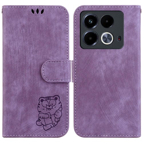 Funda de Cuero para Infinix Note 40 4G con Relieve Little Tiger (Púrpura)