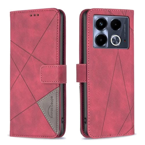Funda para Teléfono Infinix Note 40 5G Cuero Textura Rombo Hebilla Magnética (Rojo)