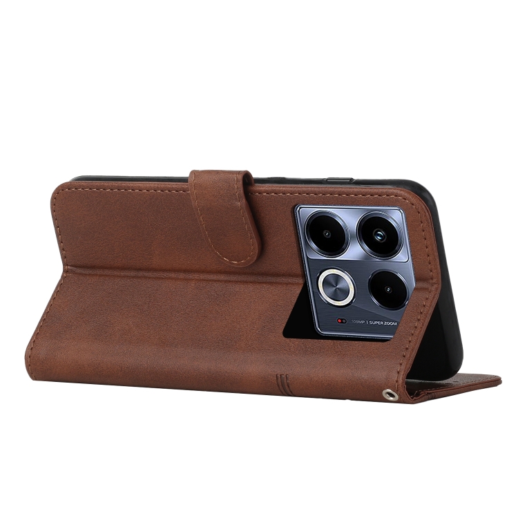 Funda para Teléfono Infinix Note 40 de Cuero con Hebilla y Textura de Becerro (Marrón)