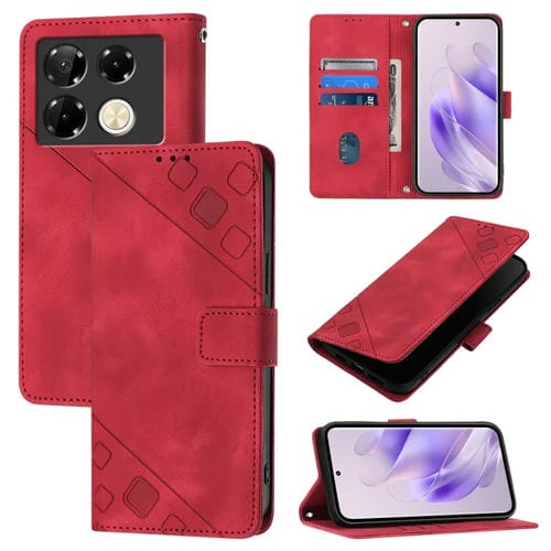 Funda de Cuero Skin Feel para Infinix Note 40 Pro 4G con Relieve (Rojo)