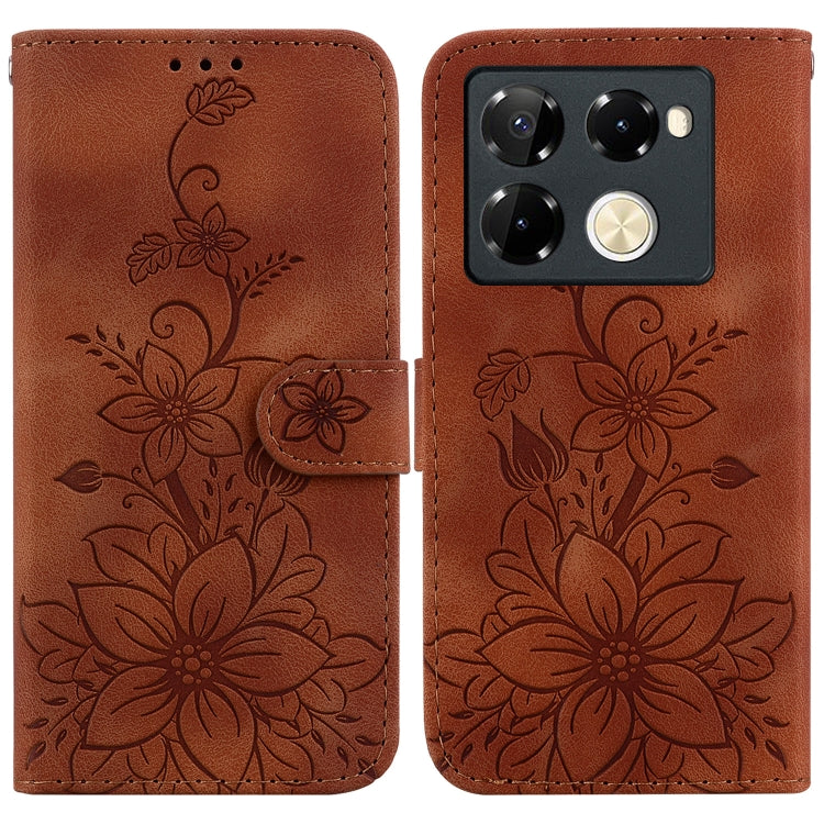Funda de Cuero Infinix Note 40 Pro + 5G Lily para Teléfono en Relieve (Marrón)