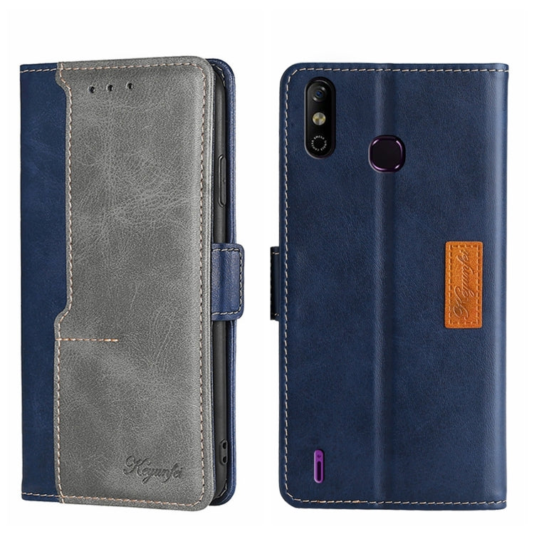 Funda de Cuero para Infinix Smart 4 X653 con Hebilla Lateral y Color de Contraste (Azul + Gris)