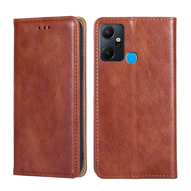 Estuche para Teléfono Infinix Smart 6 Plus Cuero Magnético Color Sólido (Marrón)