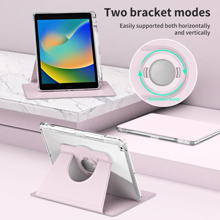 Funda para Tableta Apple iPad 10.2 (2012) 10.5 (2019) Cuero Acrílico Transparente Desmontable Rotación 360 (Rosa)