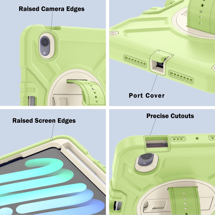 Funda para Tableta iPad Mini 6 X Rotation Silicona Híbrida con Correa (Amarillo, Verde, Blanco)