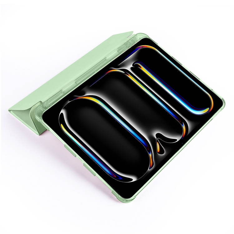Funda Inteligente de Cuero TPU 3 Pliegues para iPad Pro 11 (2024) con Ranura para Bolígrafo (Verde Matcha)