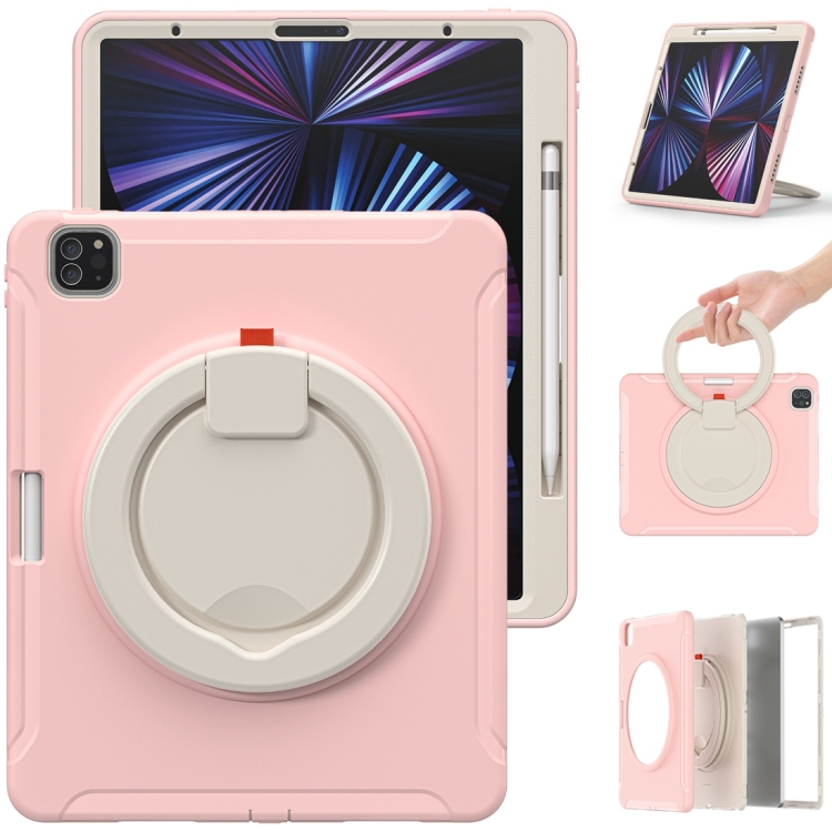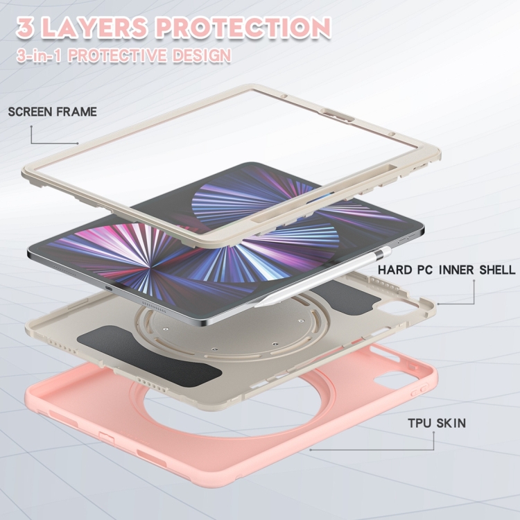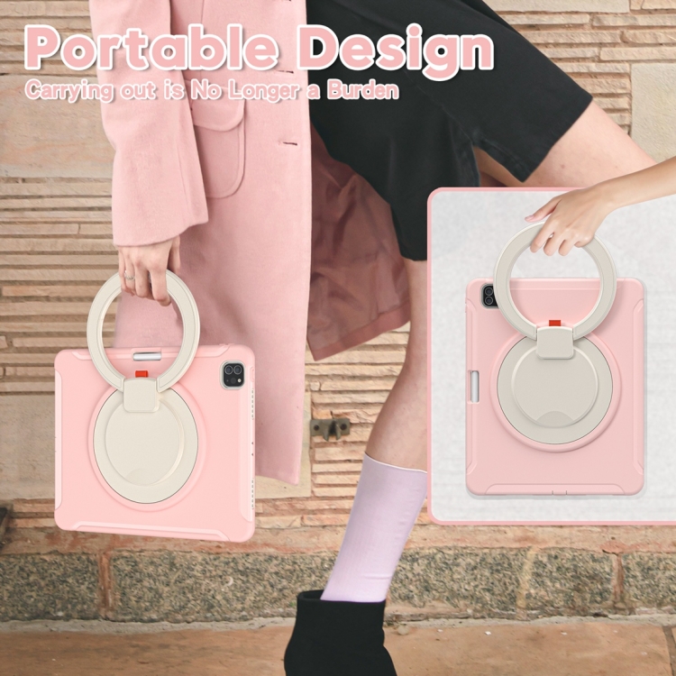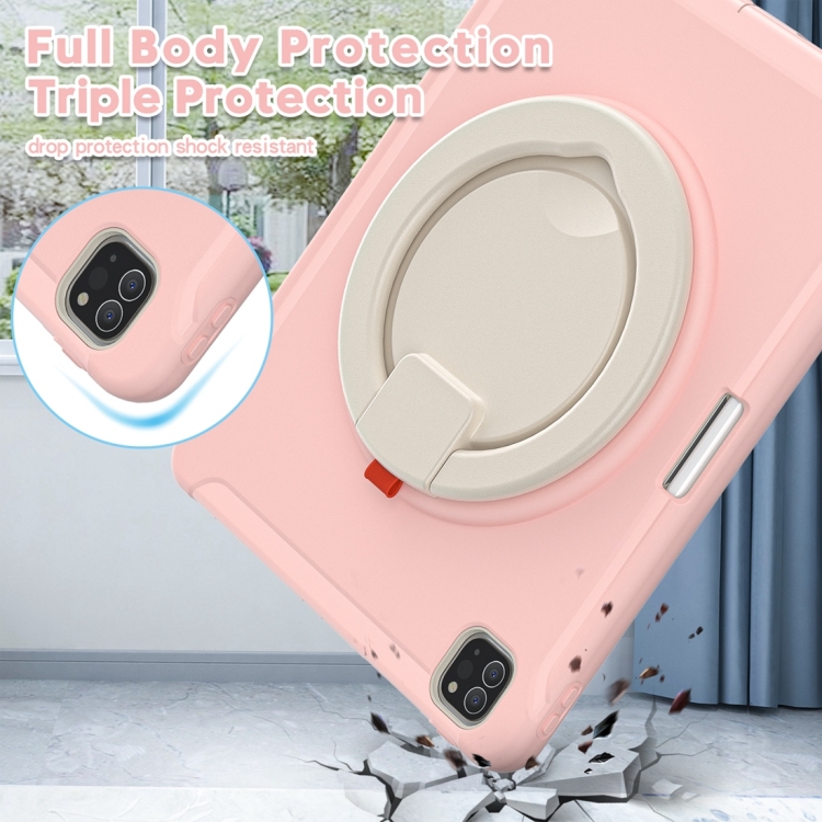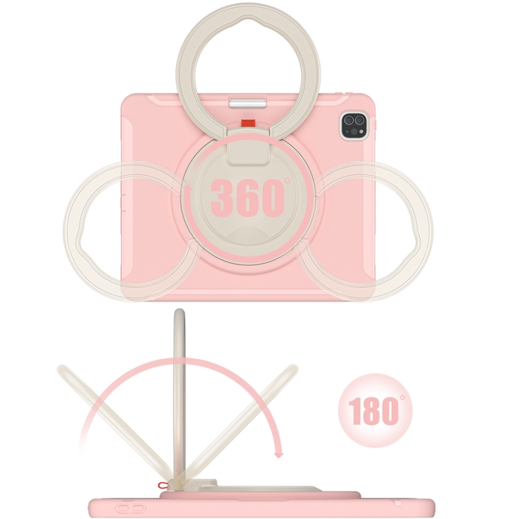 Funda Protectora para iPad Pro 12.9 2022/2021 TPU + PC con Rotación 360° y Soporte (Flores de Cerezo Rosa)