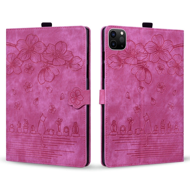 Funda para Tableta iPad Pro 12.9 Apple 2022/2021 Cuero Inteligente Relieve Gato Sakura (Rojo Rosa)