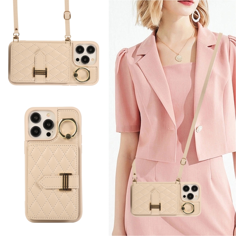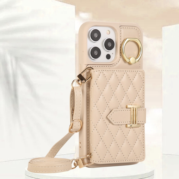 Funda para Teléfono iPhone 11 Bolsa de Tarjeta Horizontal con Soporte de Anillo y Cordón Doble (Beige)