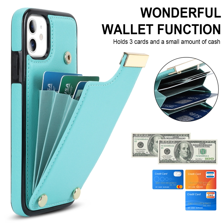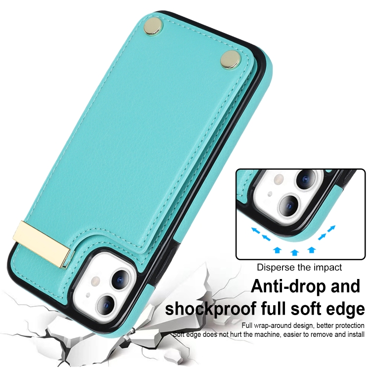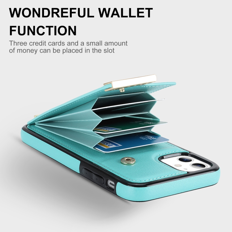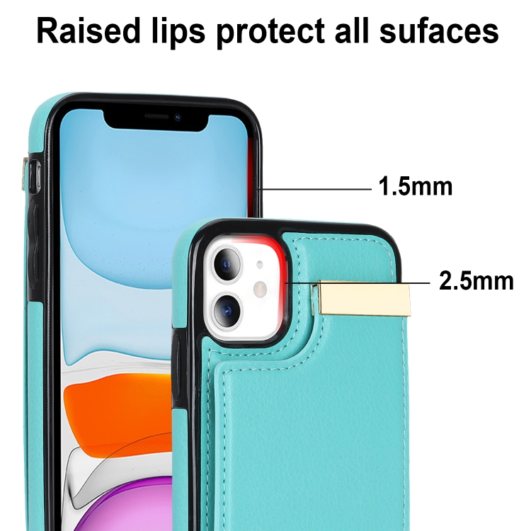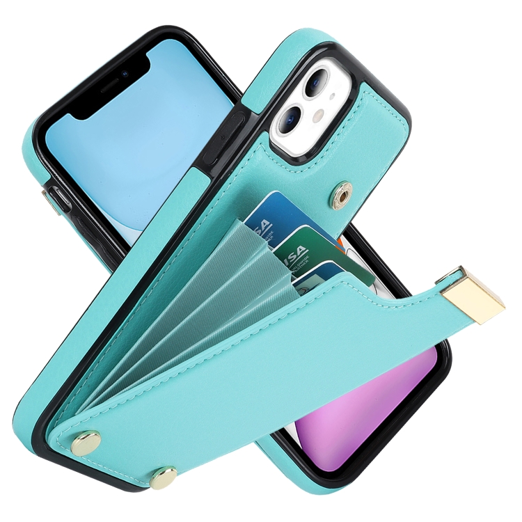 Caja de Teléfono para iPhone 11 con Ranuras para Tarjetas y Hebilla de Metal (Verde)