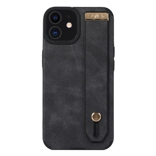 Correa de Muñeca TPU Funda de Teléfono para iPhone 11 de Cuero (Negro)