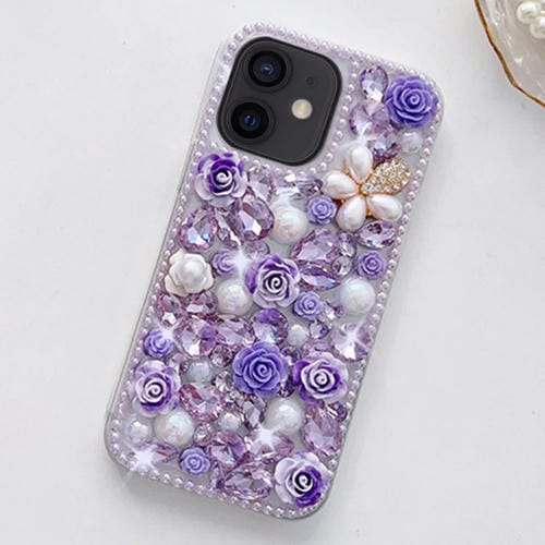 Estuche para Teléfono iPhone 11 con PC y Diamantes Engastados a Mano (Rosa)