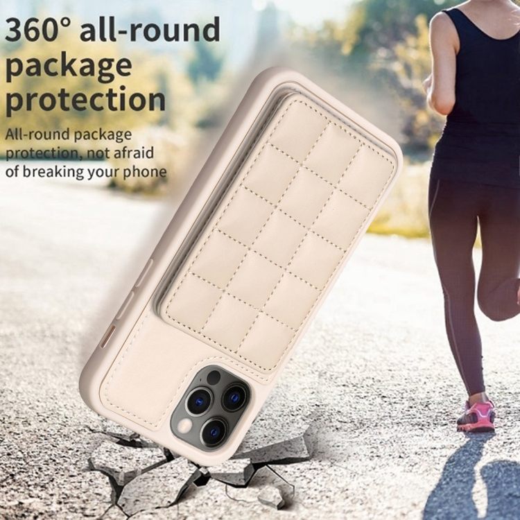 Funda para iPhone 11 Grid Card Slot Holder Phone Case (Beige)