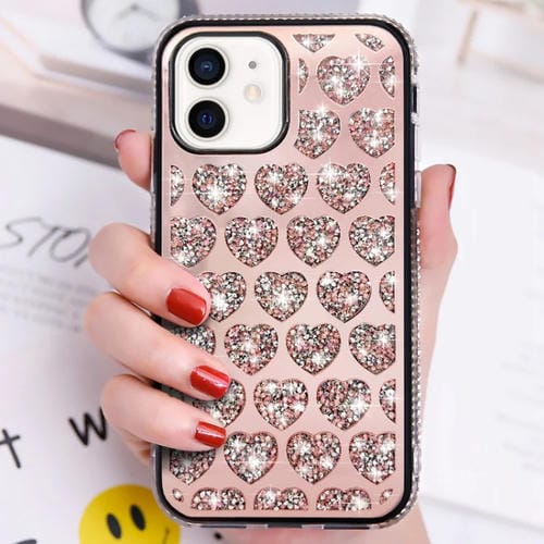 Funda para Teléfono iPhone 11 Love Hearts Diamond Mirror TPU (Oro Rosa)