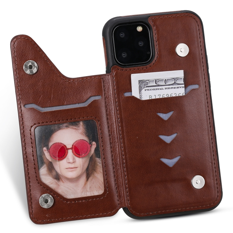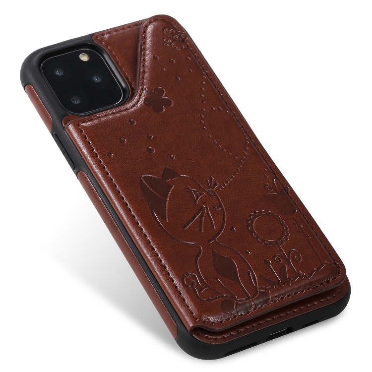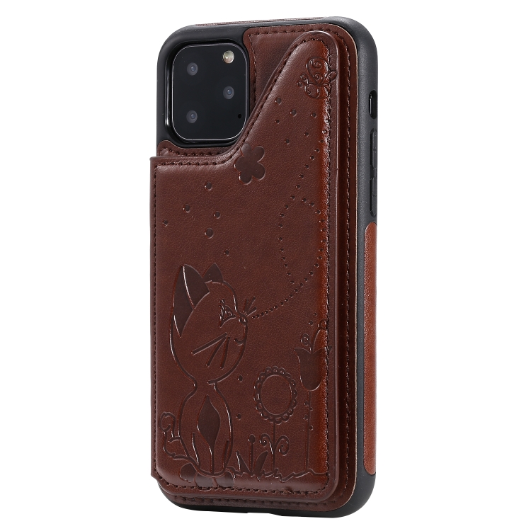 Estuche Protector para iPhone 11 Pro Cat Bee Patrón en Relieve a Prueba de Golpes con Ranuras para Tarjetas y Marco de Fotos (Marrón)