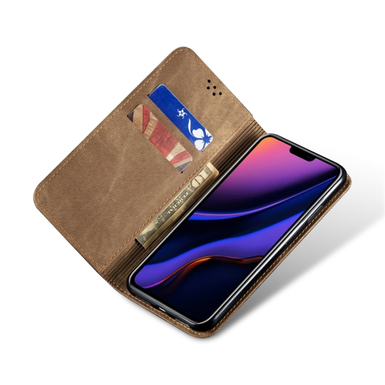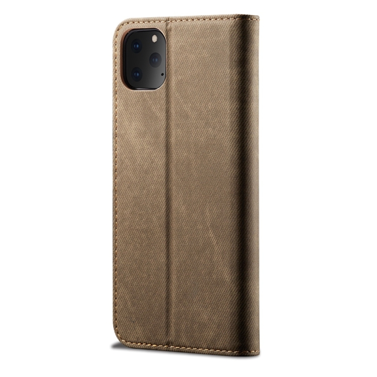 Funda de Cuero iPhone 11 Pro Denim Texture con Tapa Horizontal, Soporte y Ranuras para Tarjetas (Caqui)