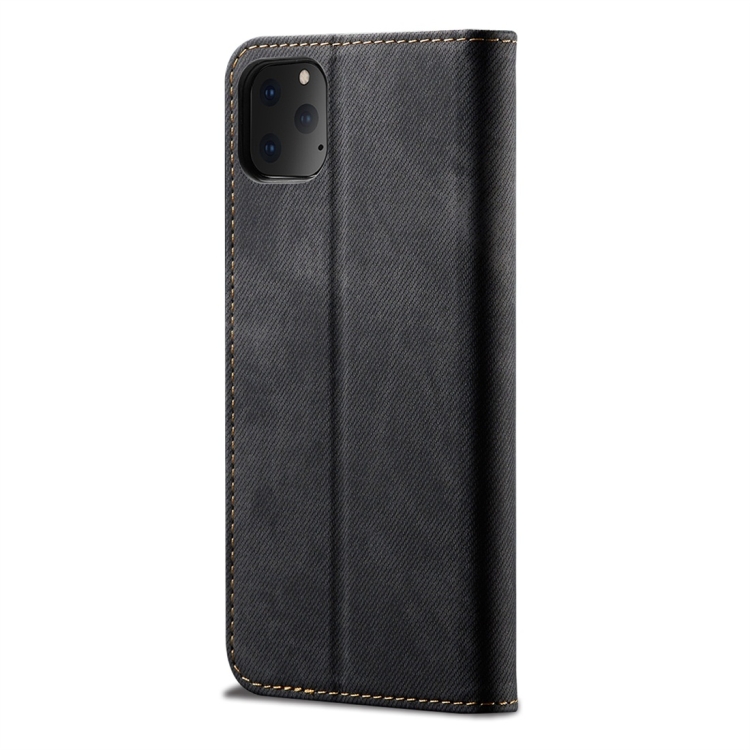 Funda de Cuero para iPhone 11 Pro Denim Texture con Tapa Horizontal, Soporte y Ranuras para Tarjetas (Negro)