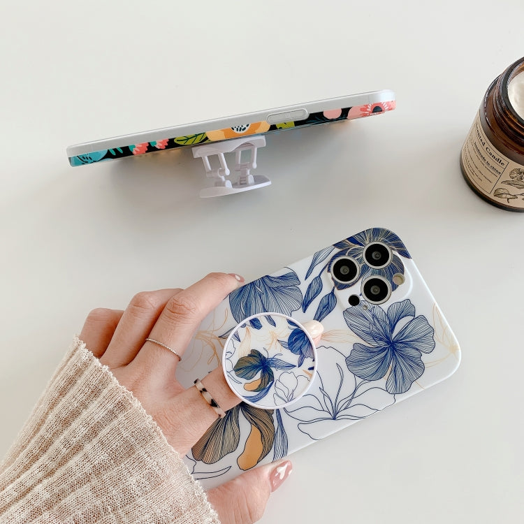 Funda para iPhone 11 Pro Max TPU con Soporte Plegable Frosted Flores Patrón (Rosa)