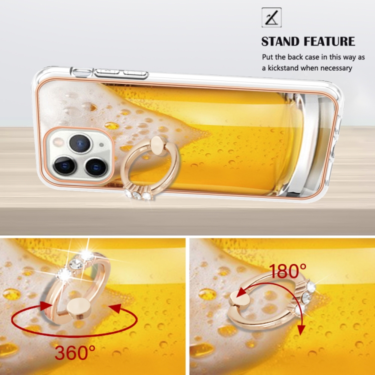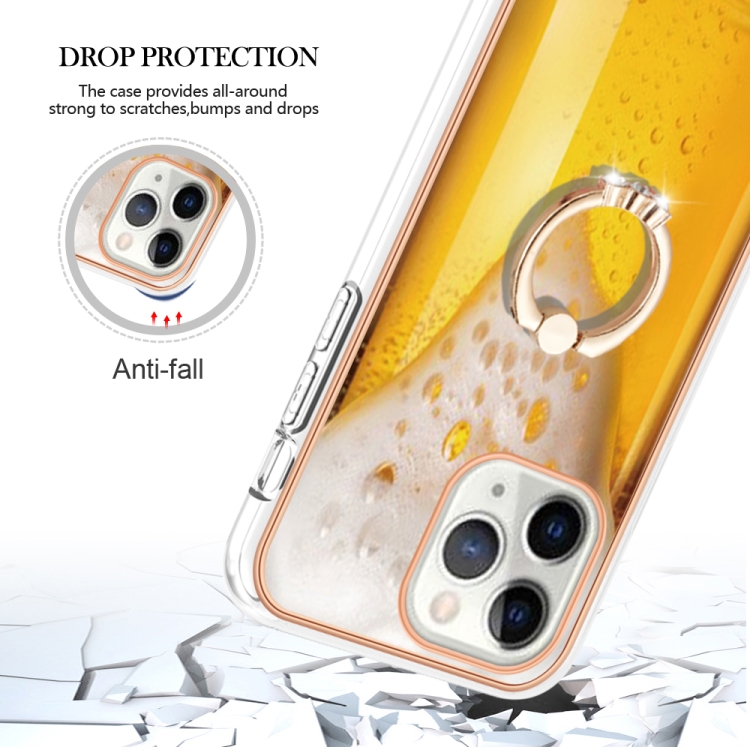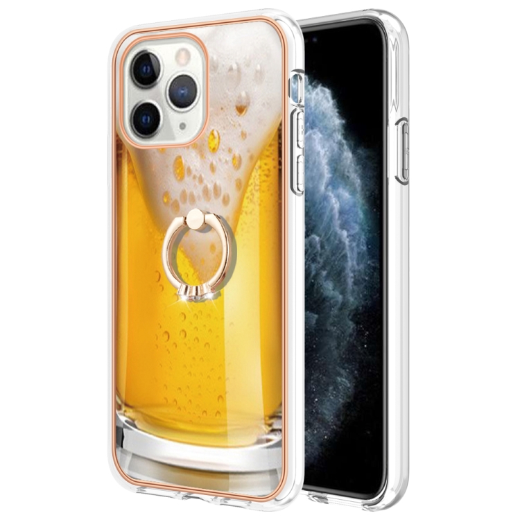 Caja de teléfono para iPhone 11 Pro Max Galvanoplastia Imd doble cara con soporte para anillo (Cerveza de Barril)