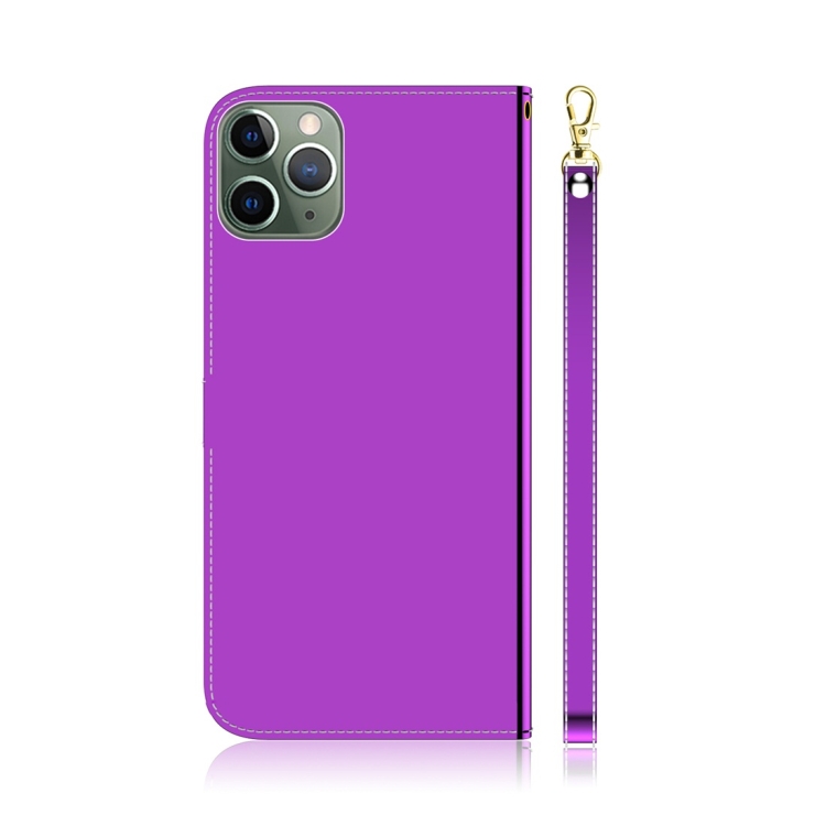 Funda de Cuero para iPhone 11 Pro Superficie de Espejo con Tapa Horizontal Soporte Ranuras Tarjetas Billetera Cordón (Púrpura)