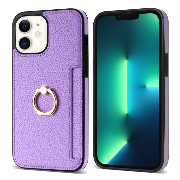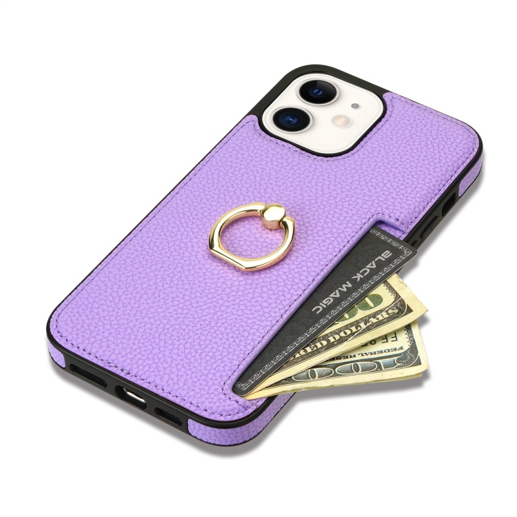 Funda Trasera para iPhone 11 Ring Card Litchi Cuero Púrpura