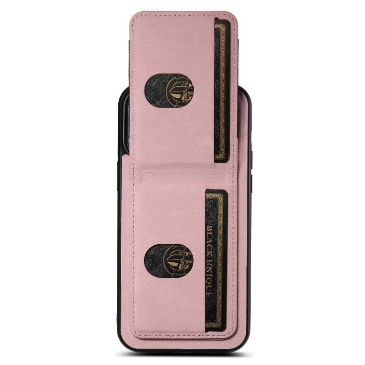 Funda para Teléfono Suteni H03 para iPhone 11 con Soporte para Tarjeta de Cuero Litchi (Rosa)