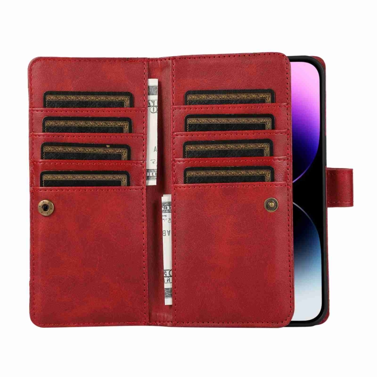 Funda de Cuero para Teléfono iPhone 12/12 Pro con Ranura para Tarjeta y Pulsera (Rojo)