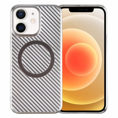 Caja de Teléfono para iPhone 12 PC Magsafe Transparente Fibra de Carbono (Gris Titanio)